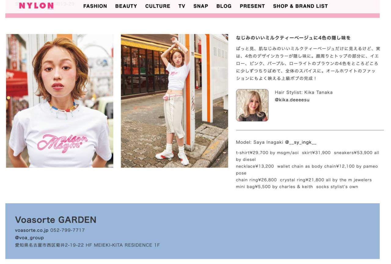 NYLON 掲載 2023/12/05 GARDEN スタイリスト 田中希佳のスタイル写真が『NYLON』に掲載されました。 こだわりのハイトーンカラー ミルクティーベージュカラーです! NYLON ↑ ぜひチェックしてみて下さい♪